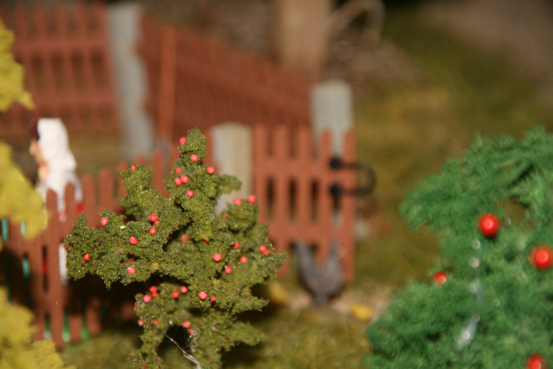 Das Forsthaus braucht auch Wald; dafür habe ich wieder einige Bäume gebastelt. Die Tanne hat einen Stamm aus Wein & Erika-Blättern.